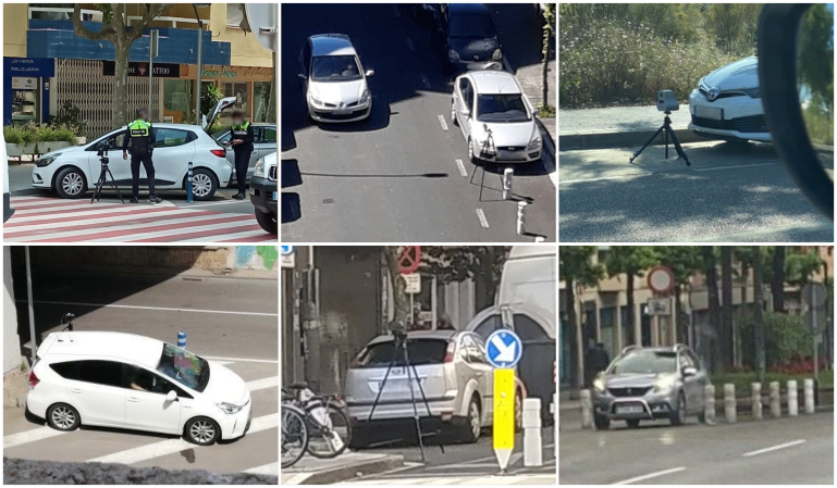 En Zaragoza, en la calle Luis Lacambra, se ha visto un vehículo aparcado y escondido junto a un contenedor de basura el cual le podría multar si supera la velocidad máxima permitida. Y, si nos trasladamos al sur, las autoridades han puesto un veloláser escondido delante de un Toyota Auris blanco camuflado en la avenida Rocío Jurado, en Málaga.