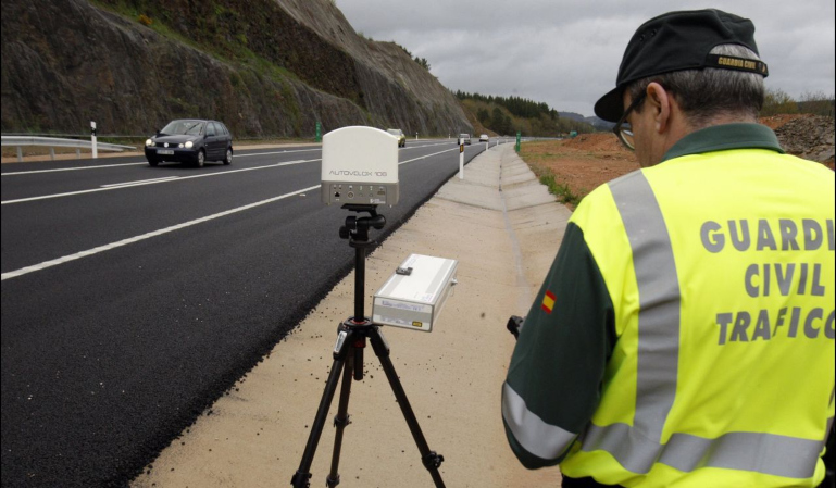 Pueden ser radares y cinemómetros láser. Estos últimos ‘disparan’ varios haces de luz transversales a la calzada. Cuando un vehículo en movimiento los interrumpe, el dispositivo calcula su velocidad.